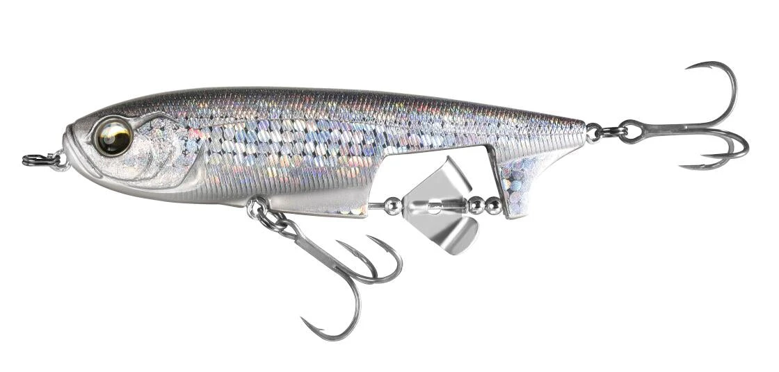 - Long “pencil-style” body with a metal buzz blade and clackers on the rear portion of the bait that create strike-triggering bubble trails.