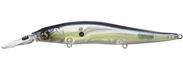The Megabass Ito Vision 110+1 is a 4 1/3 inch, 1/2 ounce mid-range depth suspending jerkbait that runs between 4 and 9 feet deep. Overall, the Ito Vision 110+1 is designed to increase the depth of the original Ito Vision 110 by up to 3 feet to increase the maximum dive depth from 6 to 9 feet.