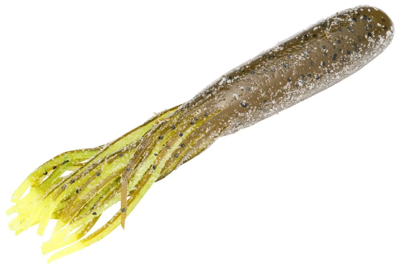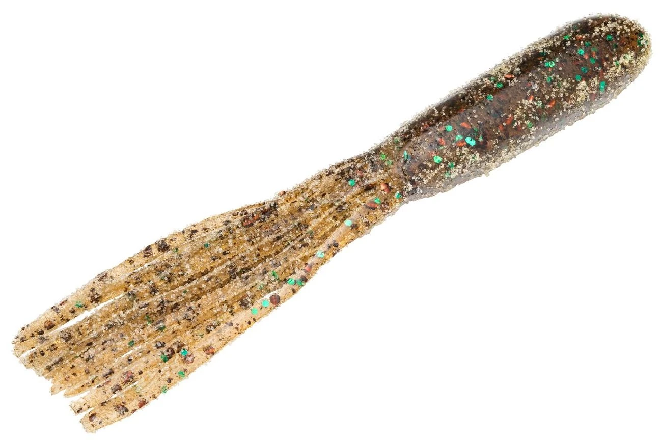 The Strike King Coffee Tube Flip-N-Tube is a hefty, 4 1/2 inch soft plastic tube. This Strike King scented bait has real coffee bean granules and coffee bean oil that makes it very attractive to bass and encourages them to hold on longer. The coffee scent also masks human scents which naturally happens to the baits when handling and rigging.