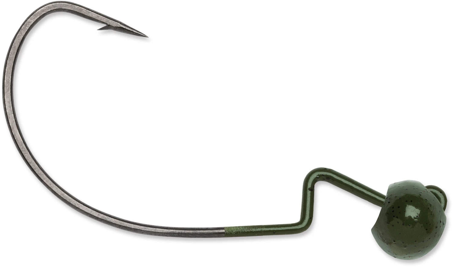This unique hybrid design allows for one of the most versatile jigs imaginable: You can fish it over rocks or gravel, through weed, around boat docks, anywhere you can think to throw it and it imparts a killer side-to-side, rolling action to your bait. Its offset hook also allows you to Texas-rig soft plastics and its extra wide gap and super sharp point allow it to accommodate any style of soft plastic, while also increasing your hook up ratio. A recessed line eye even protects against snags, weeds, and abrasion from underwater obstacles. Available in Black and Green Pumpkin in weight ranging from 1/16 to 1/2 ounce.